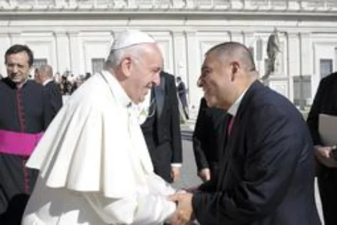 Bishop Juan Carlos Mendez shares the gift of laughter with Pope Francis.